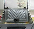 A679192014 Boy Chanel A67919 Gray Flap Shoulder Bag in Original LeatherSALE:$358